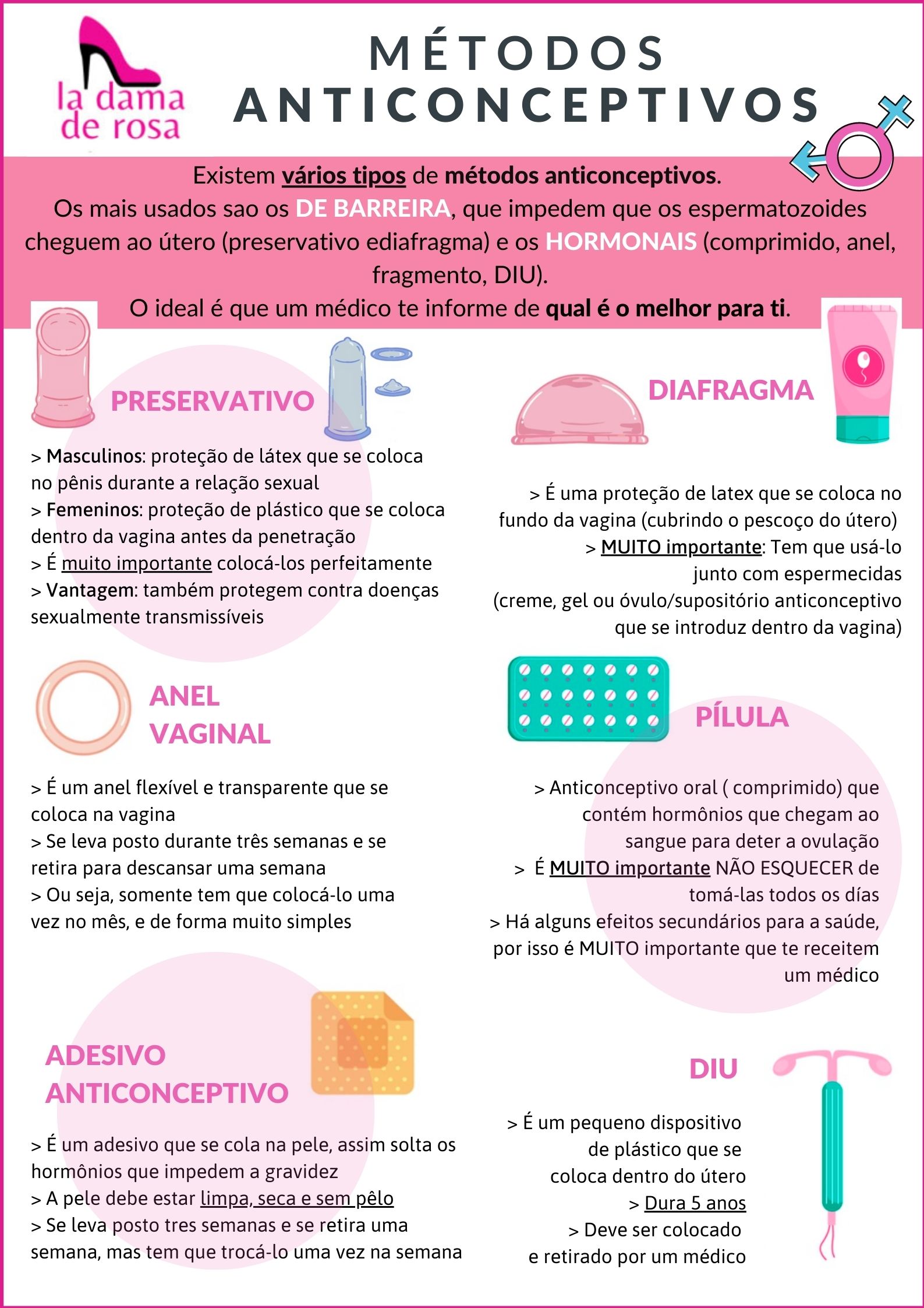 Neste folheto podes encontrar informação sobre diferentes métodos anticoncepcionais que existem. Te falamos do preservativo, do diafragma, do anel vaginal, do comprimido anticoncepcional, del adesivo e do DIU. É MUI importante que um médico te informe de qual é o melhor para ti.